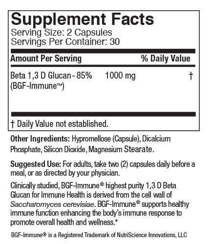 *NEW* Beta Glucan BGF-Immune® Clinically-Studied Highest Purity 85% 1,3-Beta-Glucan (Yeast-Based), 1000 mg, 60 Vegetarian Capsules